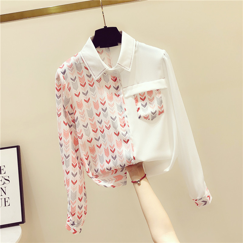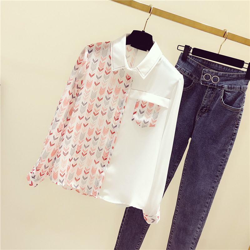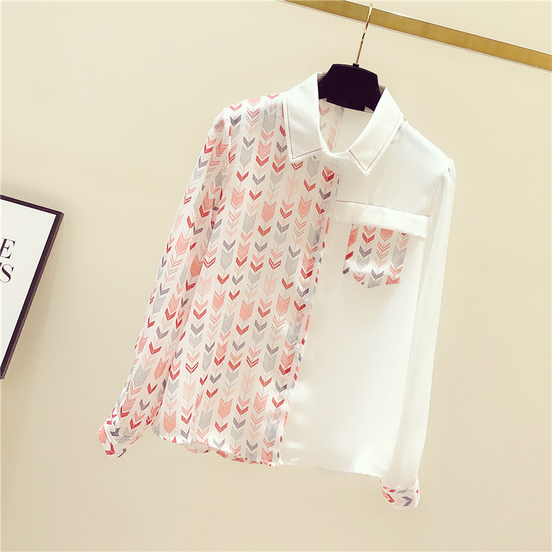 South Korean design sensation Little crowdblouse Women's spring and autumn thinned snow-spun shirt fashion Crushed Flowers Sunscreen Cardigan Shirt