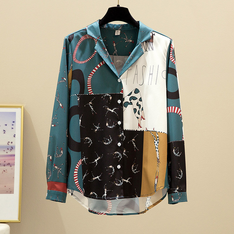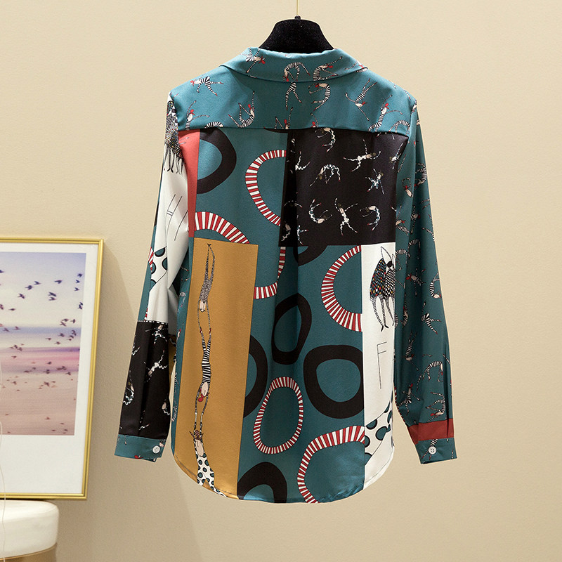 Korean spring clothing 2020 female Korean version of retro Hong Kong flavor printed chiffon shirt female fashion design sense niche top