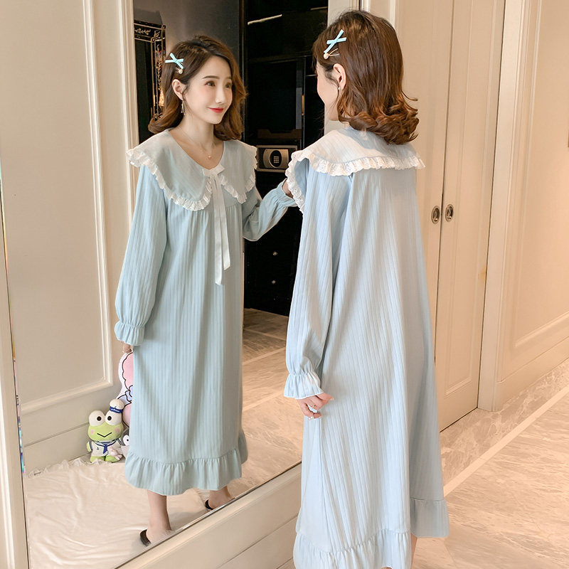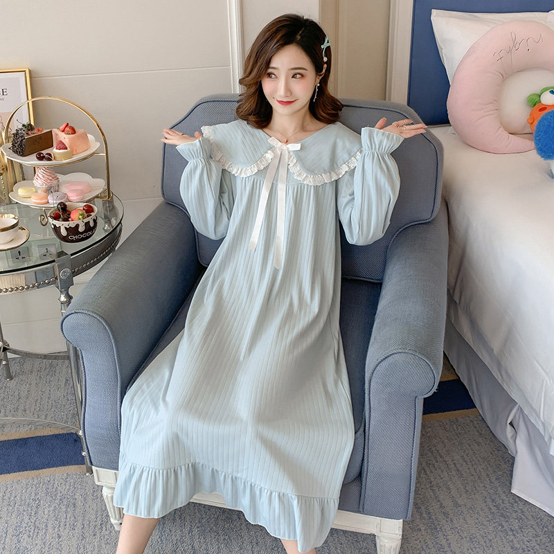 Sleeping Dress Lady Spring Autumn Pure Cotton Long Sleeve Cute sweet and Korean version Fresh student Sleeping Girl Summer Princess Wind Long Version Sleeping Dress