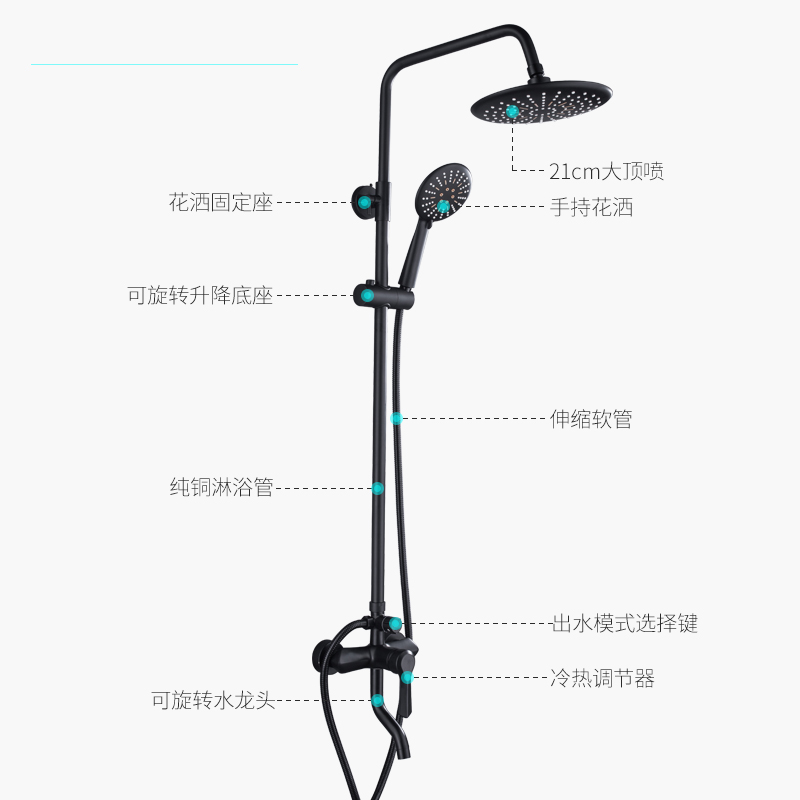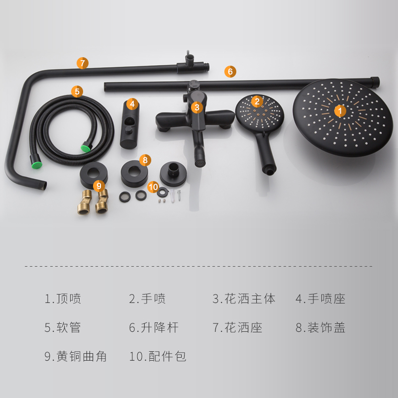 Jia Tempo Black Shower Shower Kit Home Powder Room Full Copper Bathroom Booster With Airbrush Bathroom Sprinkler