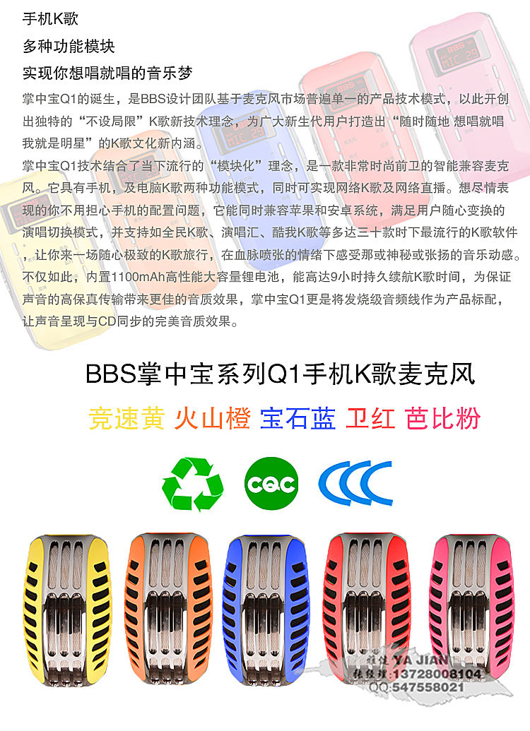 Brand new Korea BBS palm Chinese treasure Q1 mobile phone microphone All K Song small microphone with balanced display