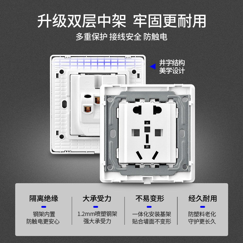 Luberta 86 type one-open double-cut power switch button socket panel wall household package white board switch