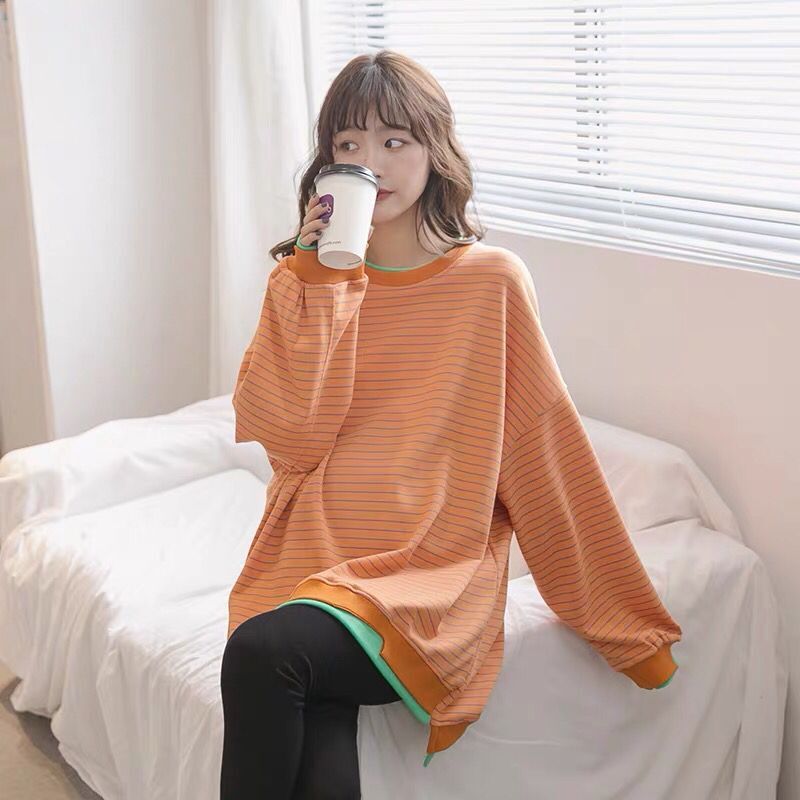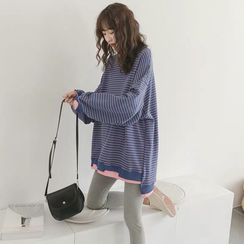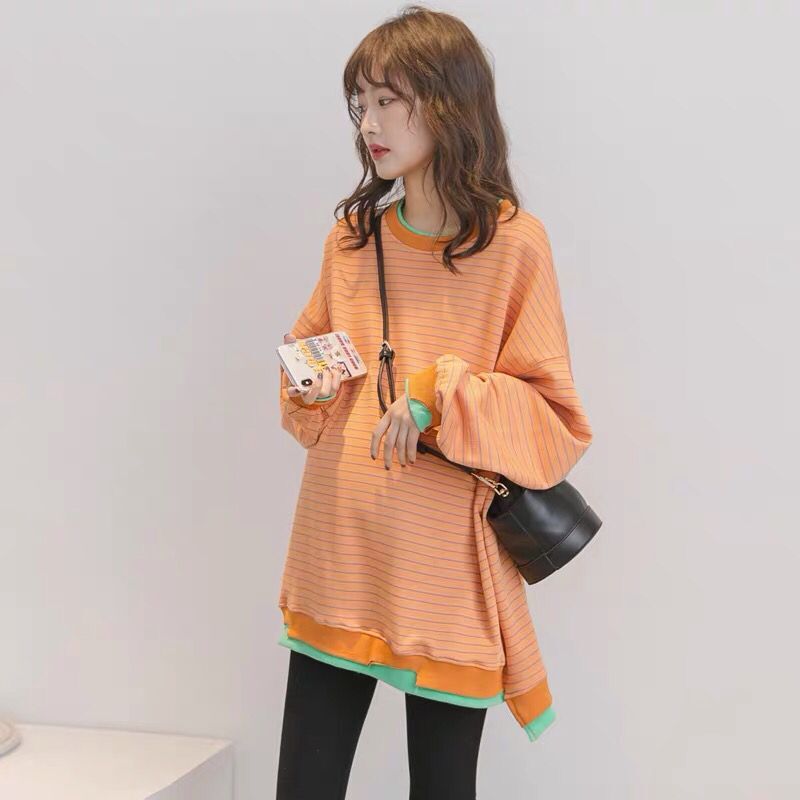Pregnant women's clothing for long versions of spring clothing 2020 new fashion casual pure cotton loose stripes fake two blouses