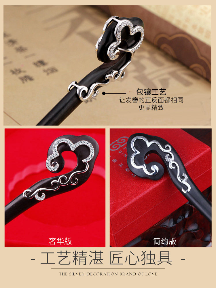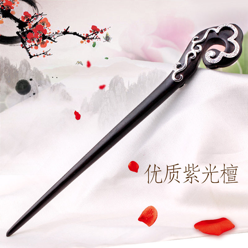 Black Sandalwood Hair Hairpin Disc Hair Ancient Wind Hair Accessories Hairpins 925 Pure Silver Steps Shake Ancient Clothes Hanfu Head Decoration Palace Retro