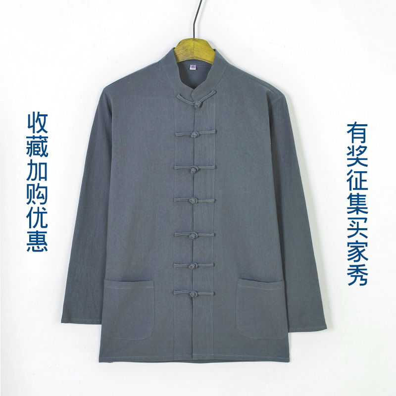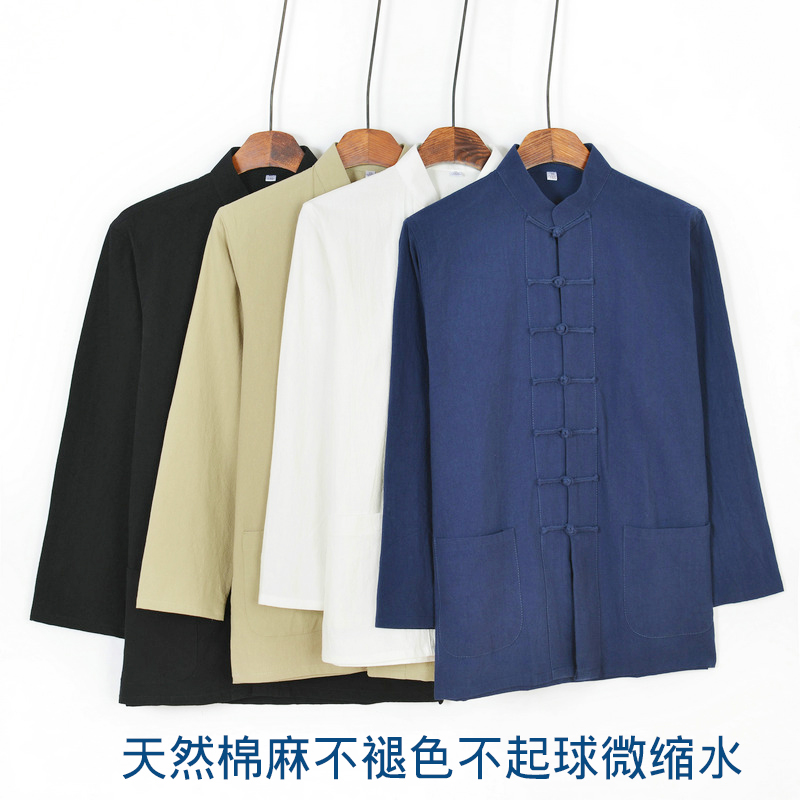 Cotton and linen men's Tang suit long-sleeved buckle jacket men's Chinese style Chinese shirt Tang suit bottoming shirt retro meditation suit summer