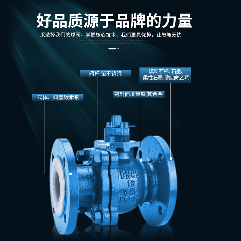 Q41F46-16C P Acid and alkali resistant fluorine lined high temperature cast steel stainless steel flanged ball valve DN15-DN300
