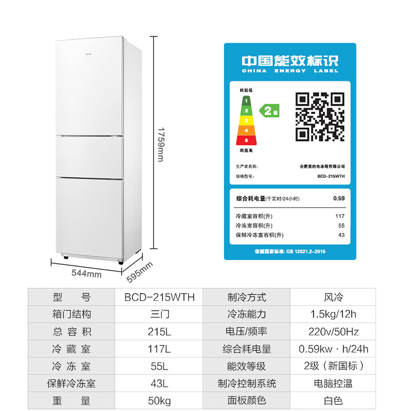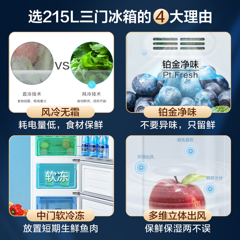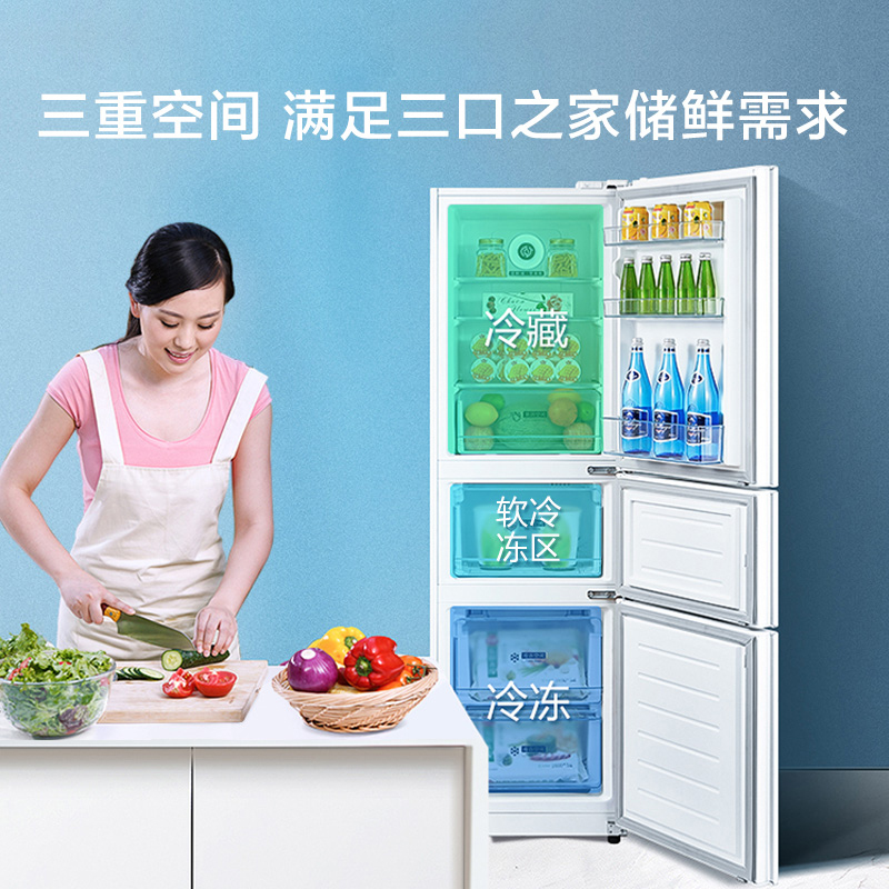 Hualing 215 liter refrigerator three doors air-cooled frost-free energy-saving bass large capacity home small dormitory rental housing