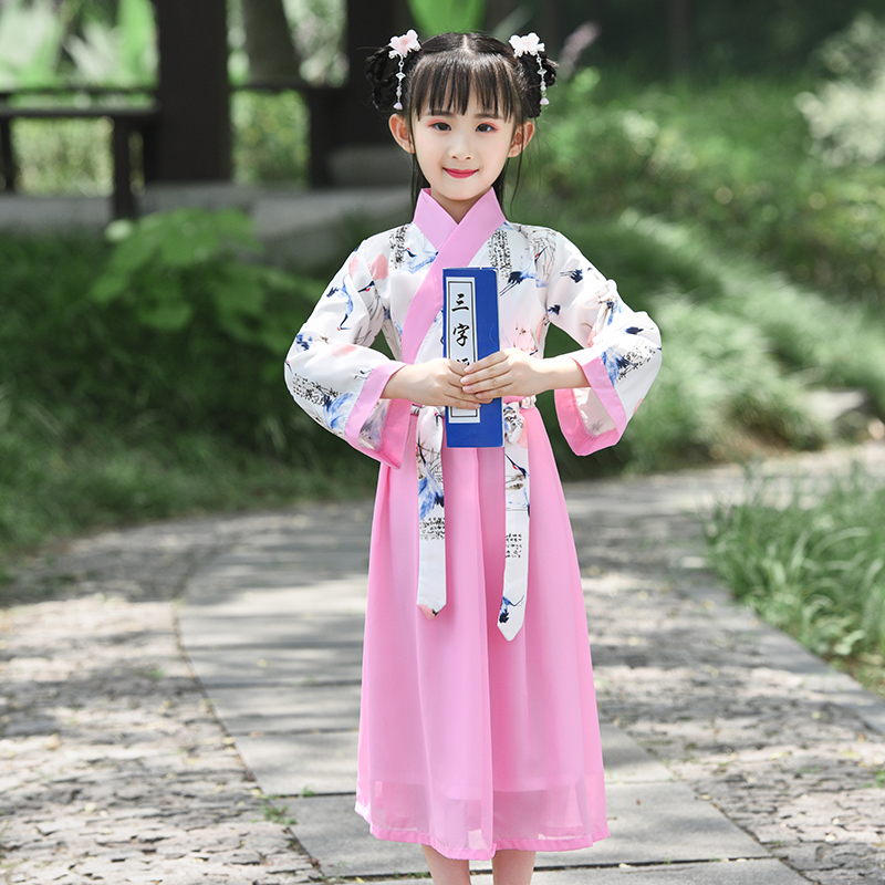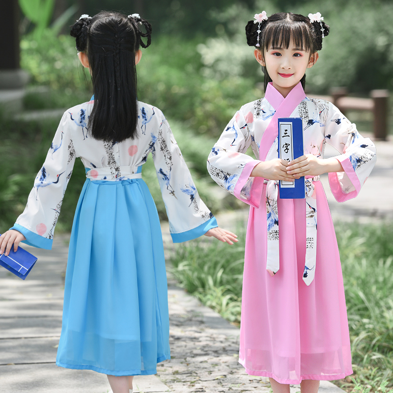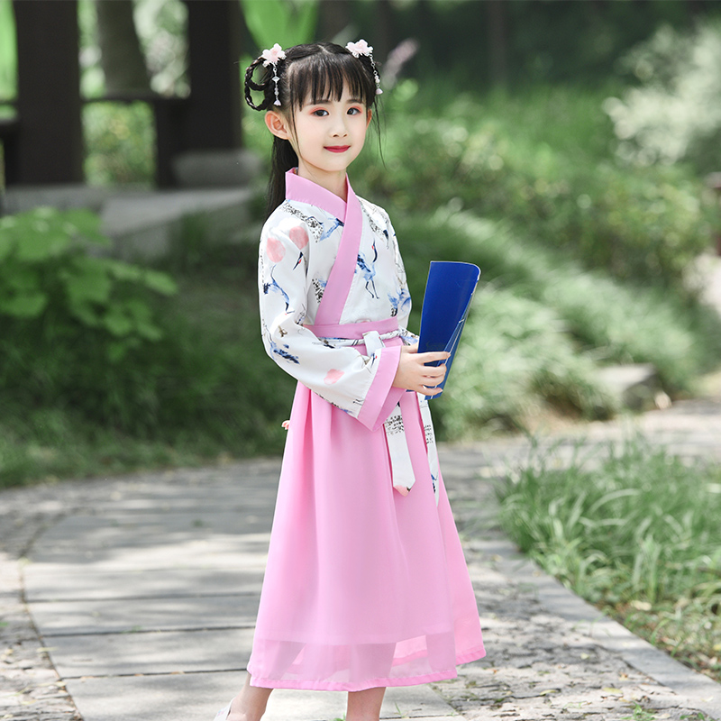 Children's Handshirt Girl Fairy Crane Embroidery Modified Dress Chinese Super Fairy Girl Dress Set