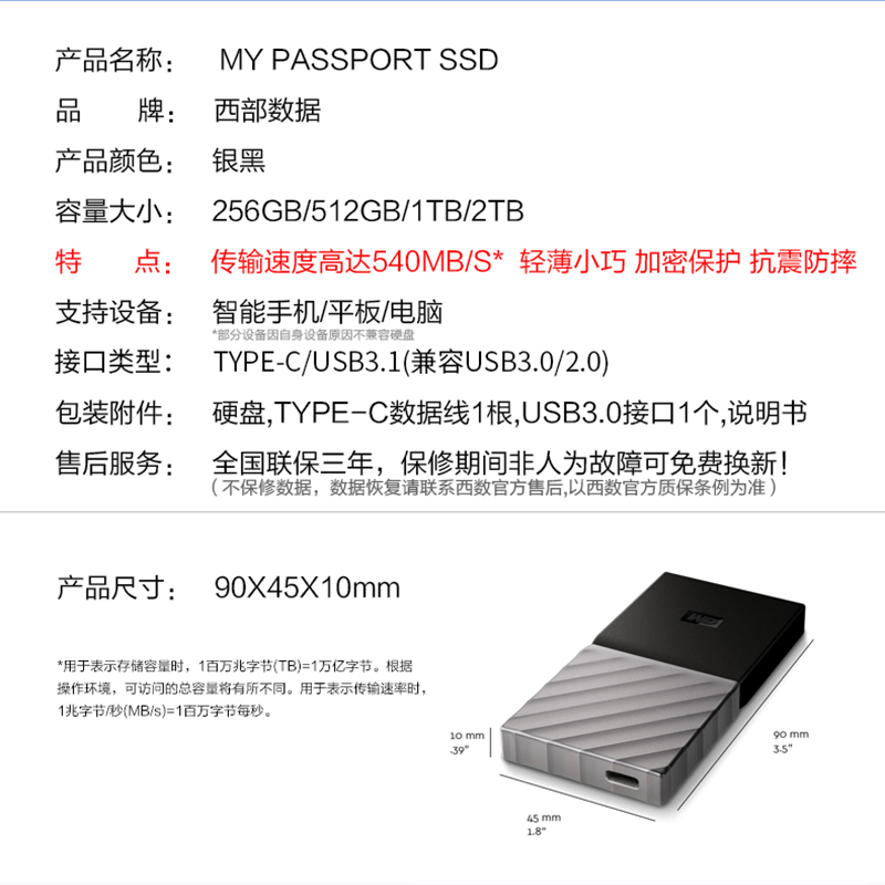 WD Western Data Mobile Solid State Drive 512G My Passport SSD USB3 1 High Speed Type-C