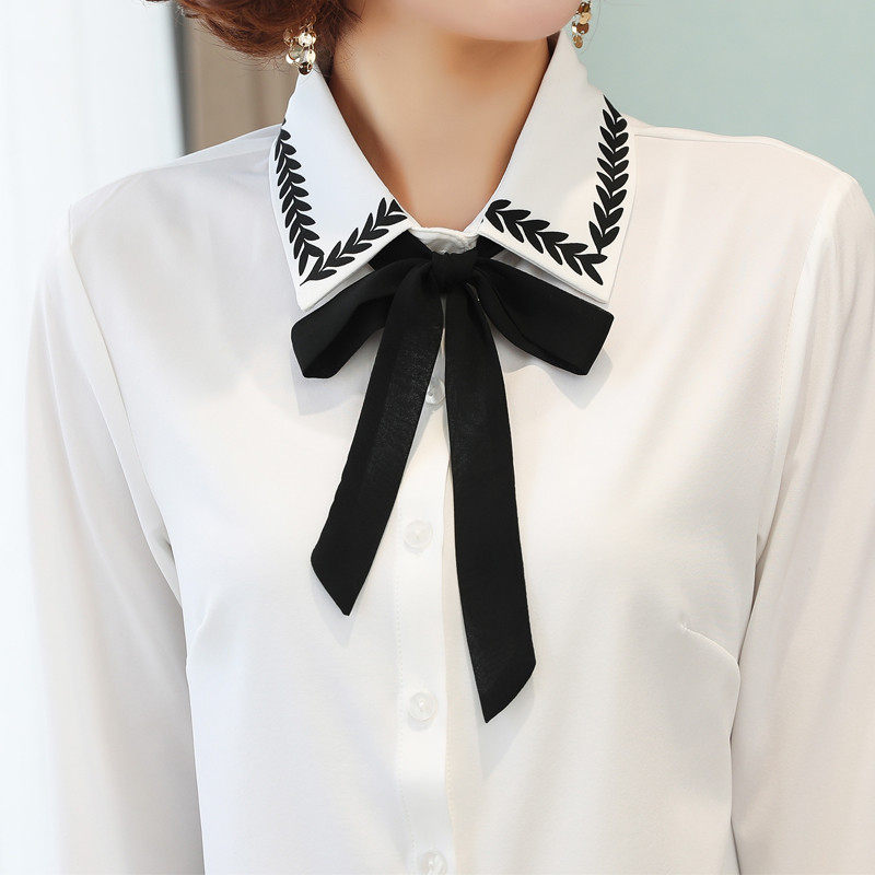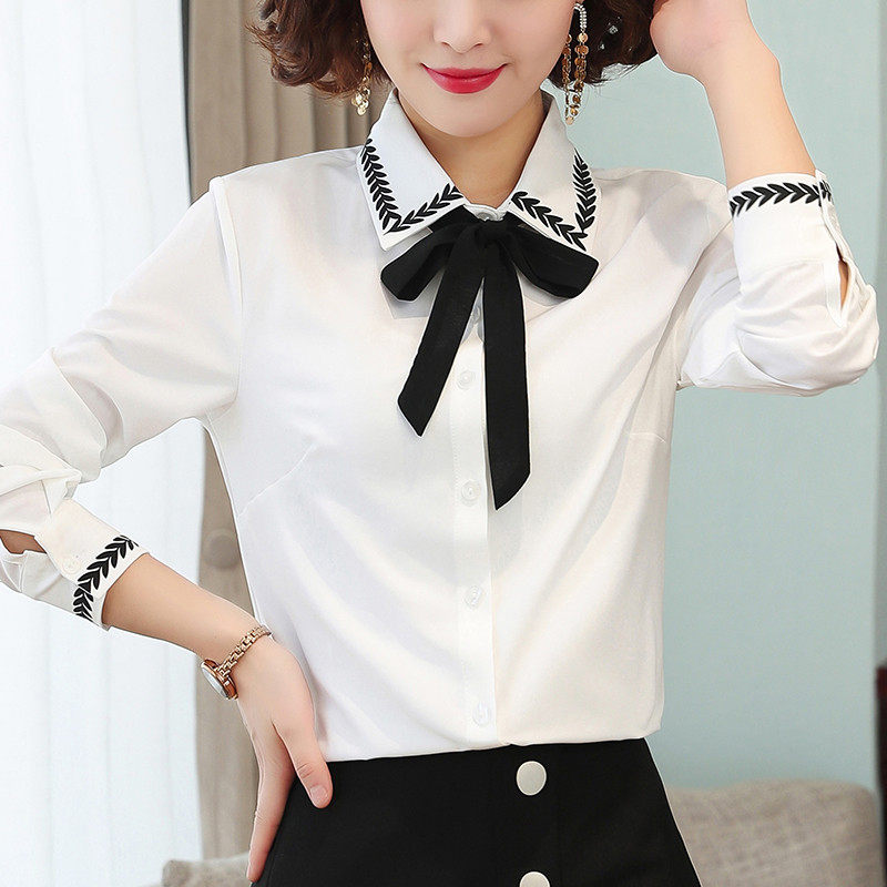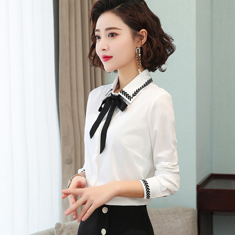 Bow lace-up shirt women's chiffon long sleeve fairy fan build fat mm size shirt Korean slim bottoming shirt