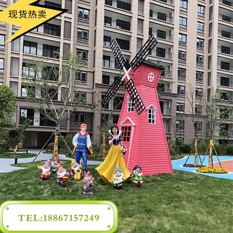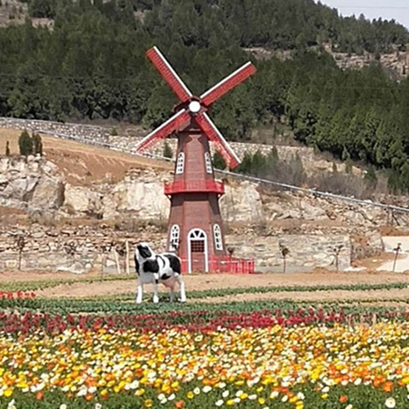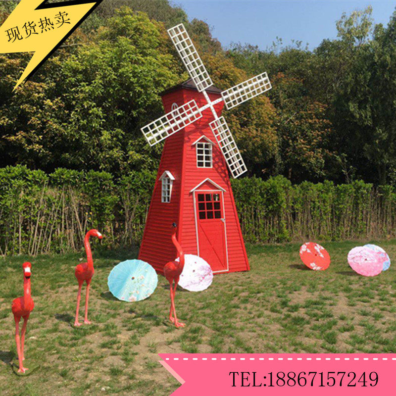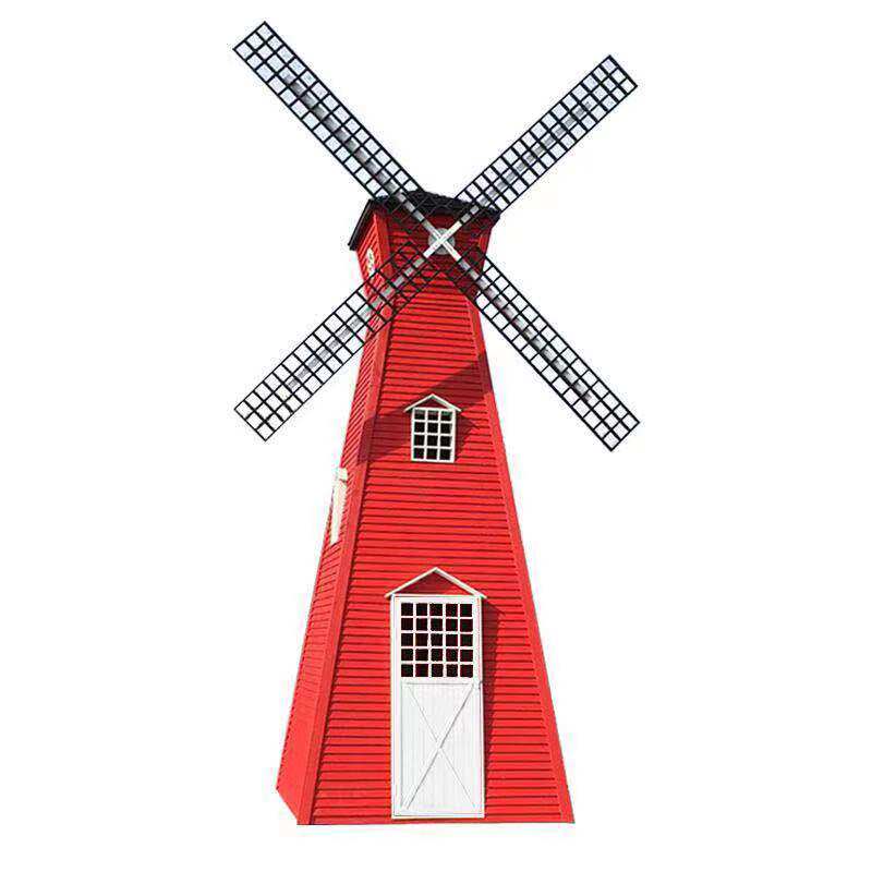 Anti-Corrosive Wood Windmill Dutch Landscape Outdoor Swivel Decoration Electric Big Windmill Flowers Haitian Garden Manufacturer Direct to do