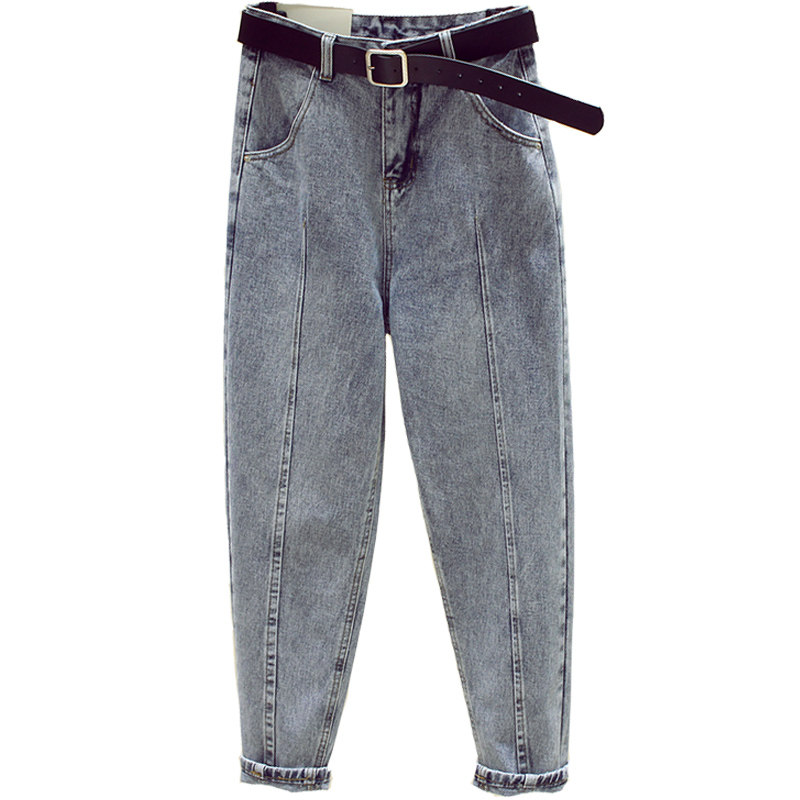 South Korea High Waist Jeans Woman 2020 Spring new women's clothing Loose Display Slim Korean version Light color 90% Old daddy pants