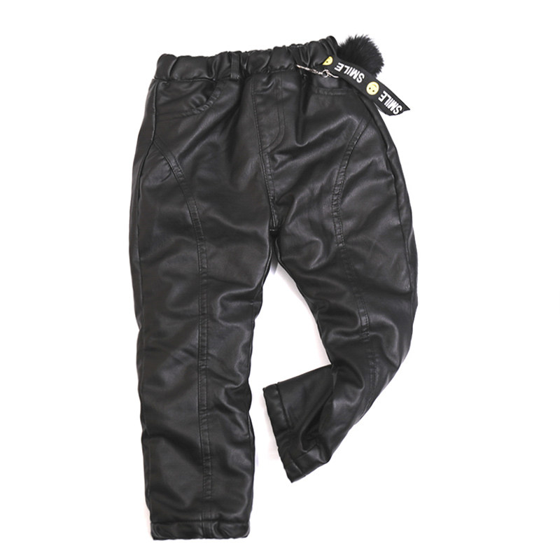 Children's clothing boys and girls autumn and winter new children's underwear plus velvet thickened boys and girls pu leather pants small children's clothing pants