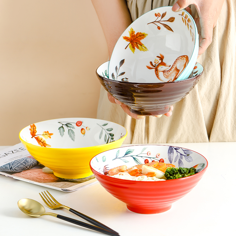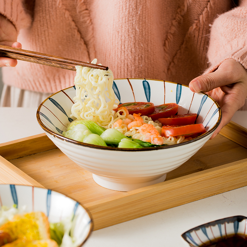 Japan-style Glazed Lower Color Ceramic Bowl Large soup bowl Blister Noodle Bar Bowl Home Pull Noodle Bowl Foam Noodle Bowl special bucket Hat Bowl Horn Bowl