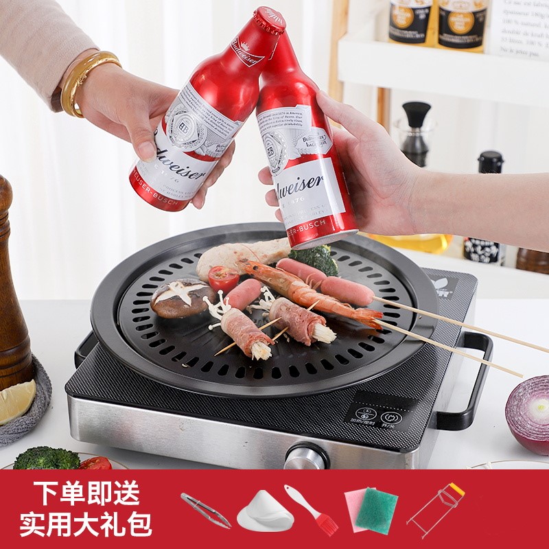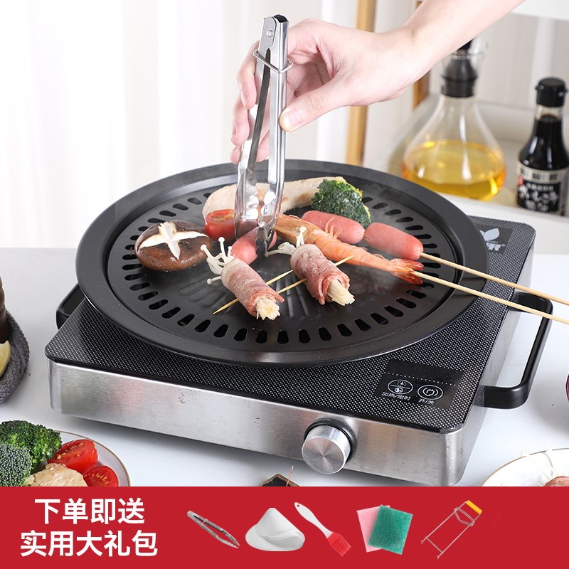 Korean Round Nonstick Grilled Meat Pan Household Charcoal Stove Stainless Steel Ming Fire Electric Pottery Stove Special Barbecue Dish Commercial Grill-Taobao