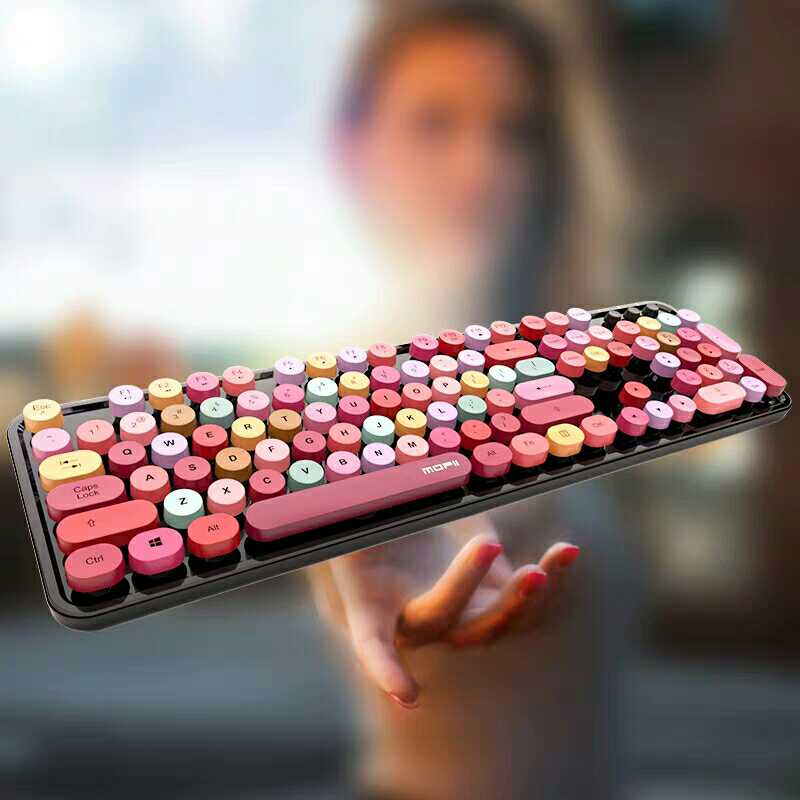 Wireless Keyboard Sliding Mouse Sets Group Portable Digital Keyboard Desktop Notebook Special Adolescent Heart Retro Round Keycap