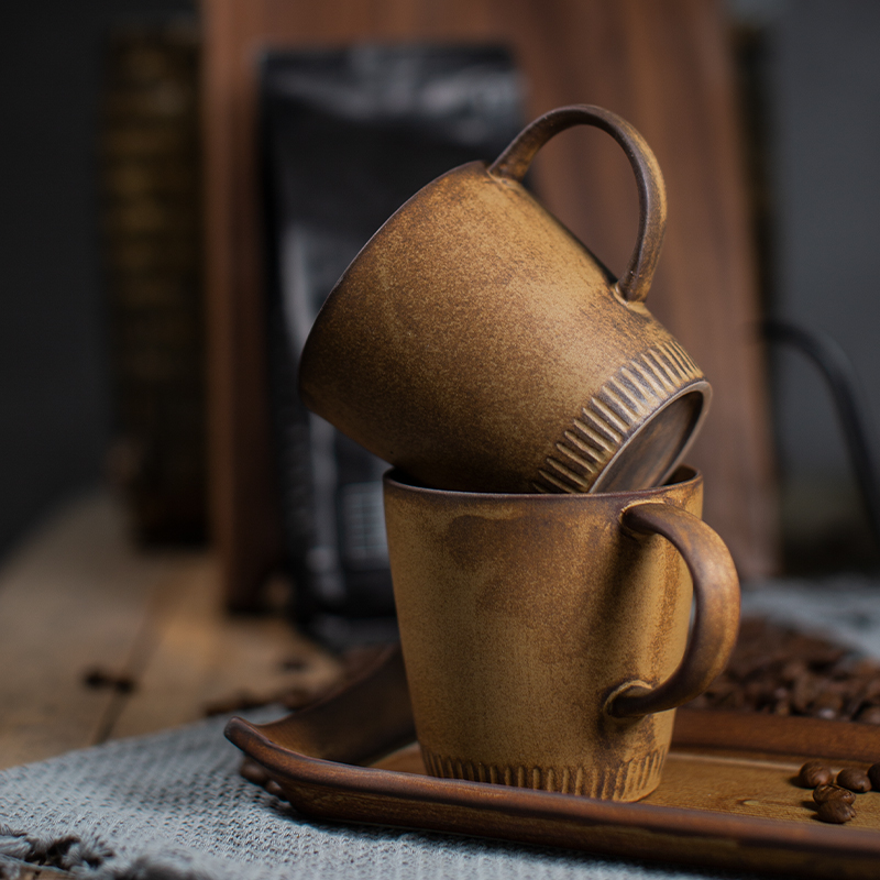 Day Style Handmade Coffee Cup Creative Home Rough Pottery Mark Cup cup Tray Water Cup Personality minimalist Breakfast Cup