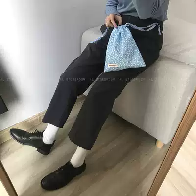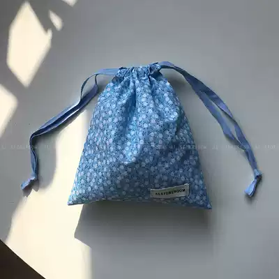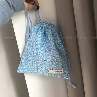 AL homemade blue small flower storage bag floral makeup women's bag ins Korean drawstring jewelry cloth bag New Products