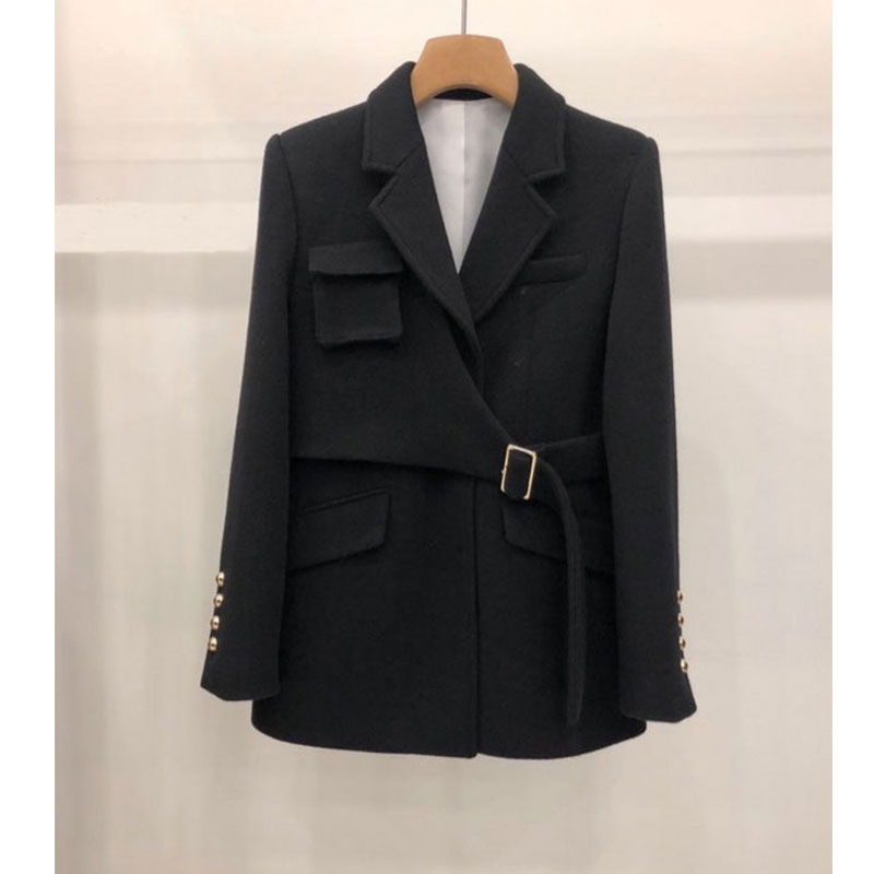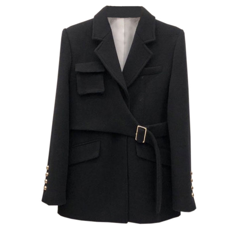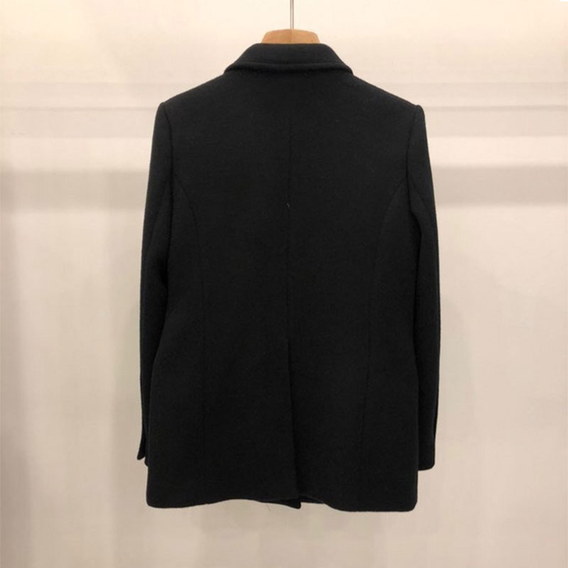 2020 autumn and winter new Korean version loose and thin black woolen small suit jacket women's medium and long version all-match suit trend