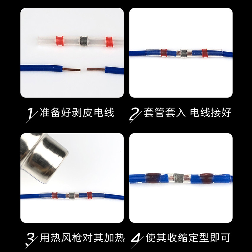 Heat shrinkable solder ring box (50pcs) Heat shrinkable solder ring cassette (100pcs) Heat shrinkable solder ring cassette (200pcs) White (0.25-0.34mm²) 100 red (0.5-1.5mm²) 100 blue (1.5-2.5mm²) 100 yellow (4-6mm²) 100 household heat guns