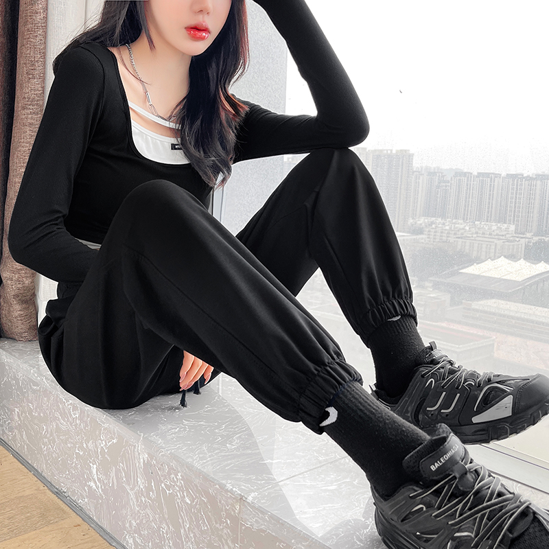 Grey Sports Pants Woman Spring Autumn Season Loose Casual Display Slim 100 Hitch Tide 2022 New Harun Beam Footed Pants