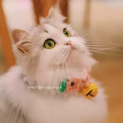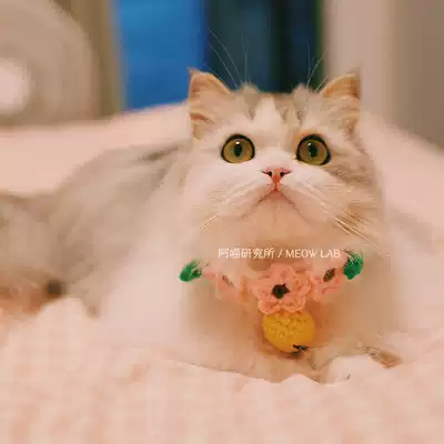 Ameo Research Institute original hand-made new peach blossom pet hand-woven scarf wool knitted cat collar
