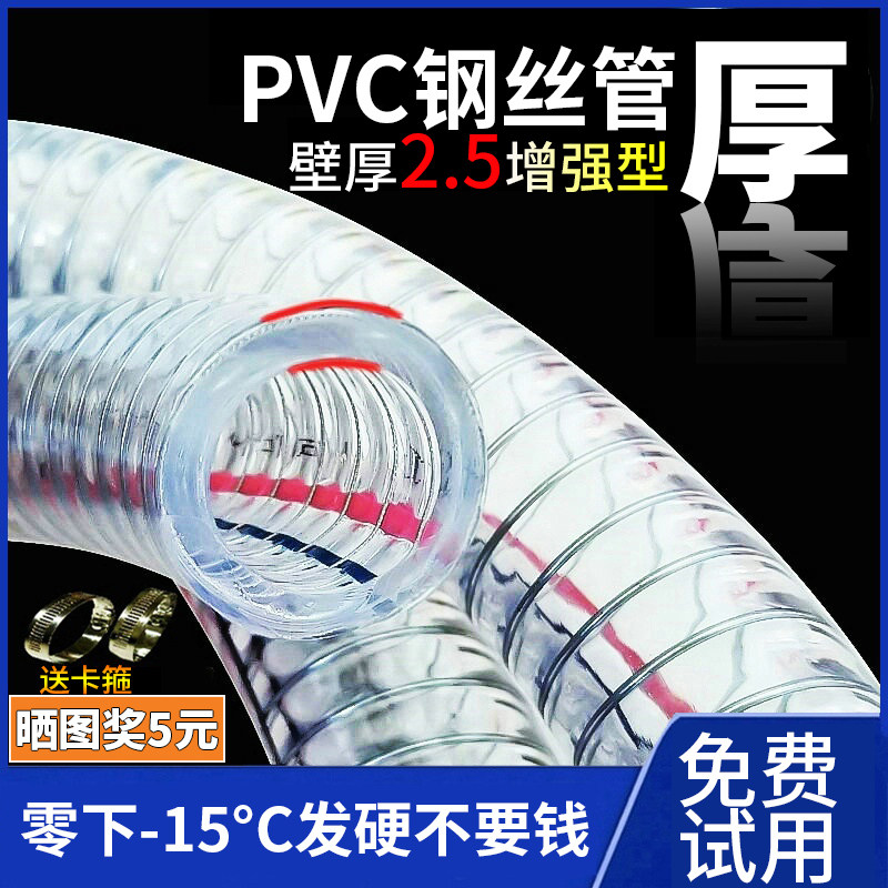 PVC with steel wire hose Transparent plastic pipe 25 thickened tubing High pressure high temperature 50 vacuum pumping pipe 1 2 inches