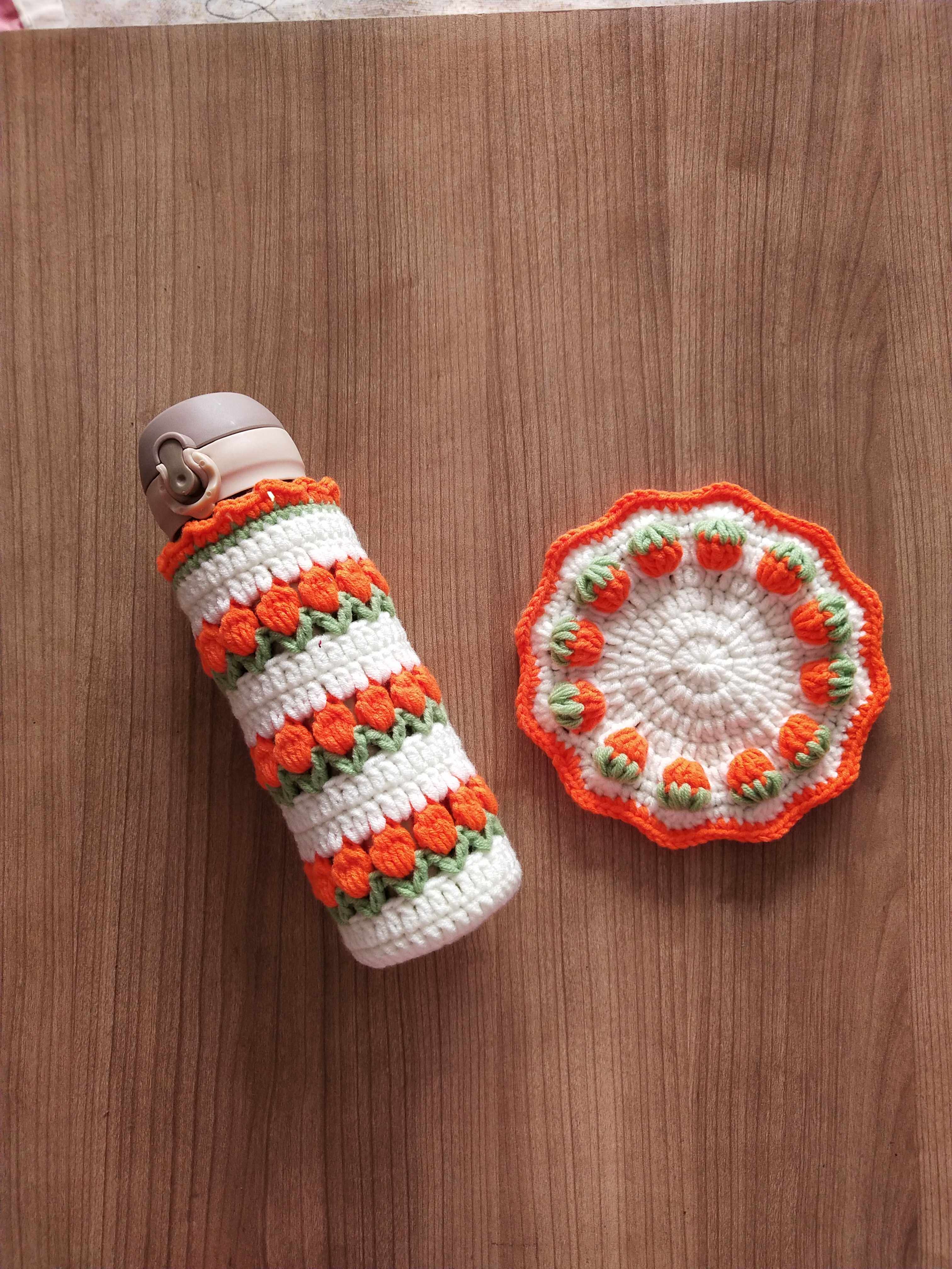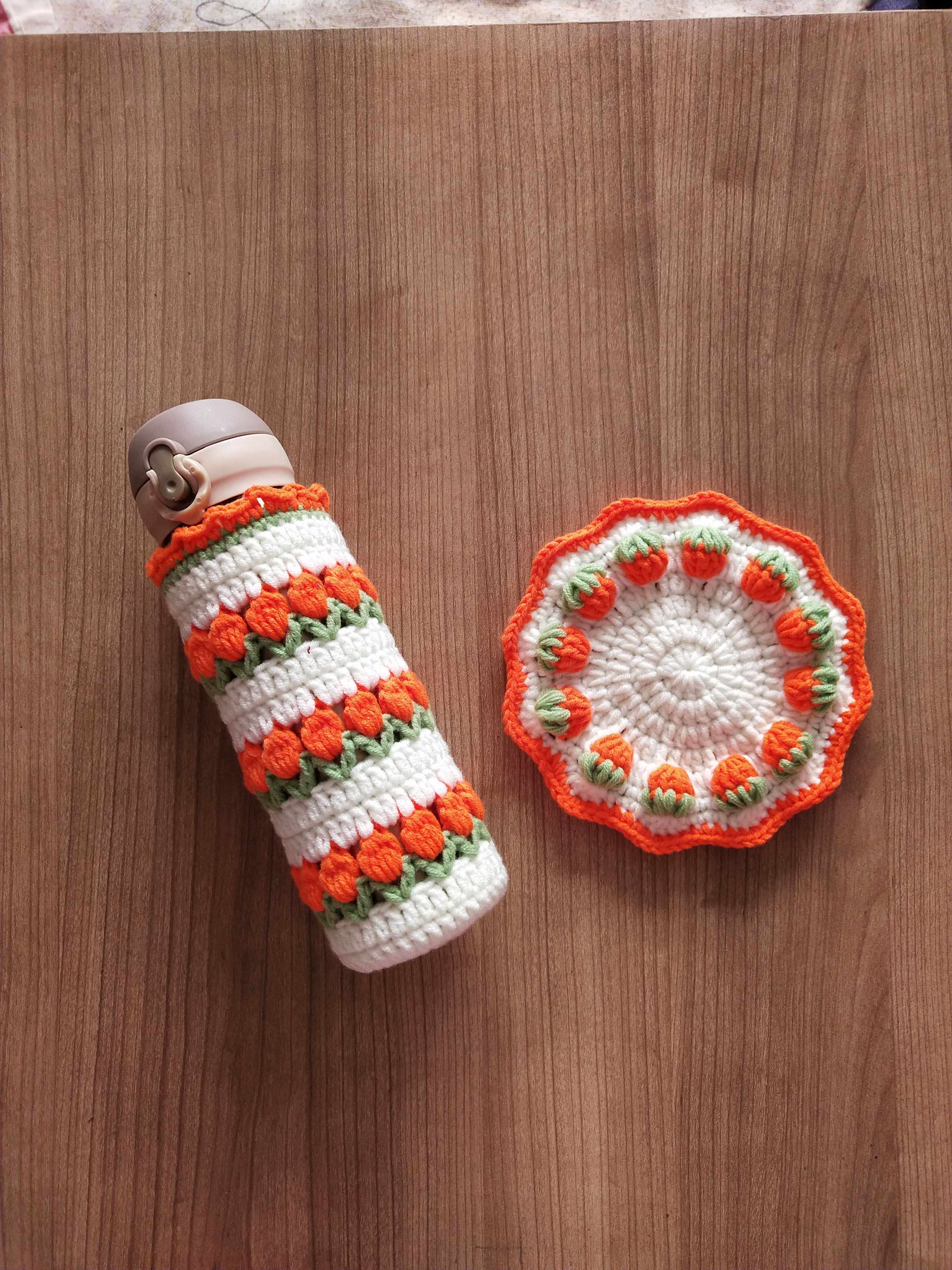 Hand crocheted wool tulip cup set creative mug with portable thermos universal 400500ml