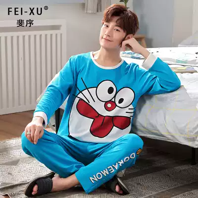 Men's pajamas long-sleeved pure cotton spring and autumn thin plus size cartoon youth student cotton home service suit