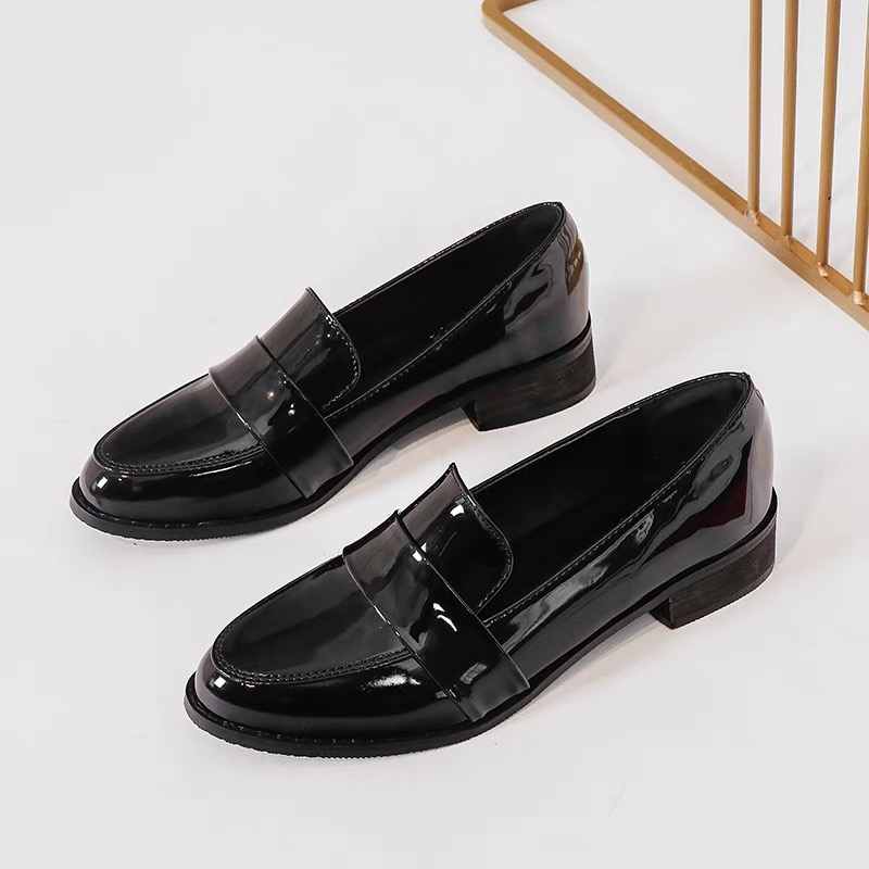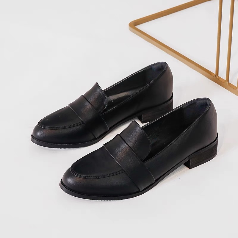 Hong Kong leather shoes 2021 autumn new black thick heel British style professional work small leather shoes women loafers