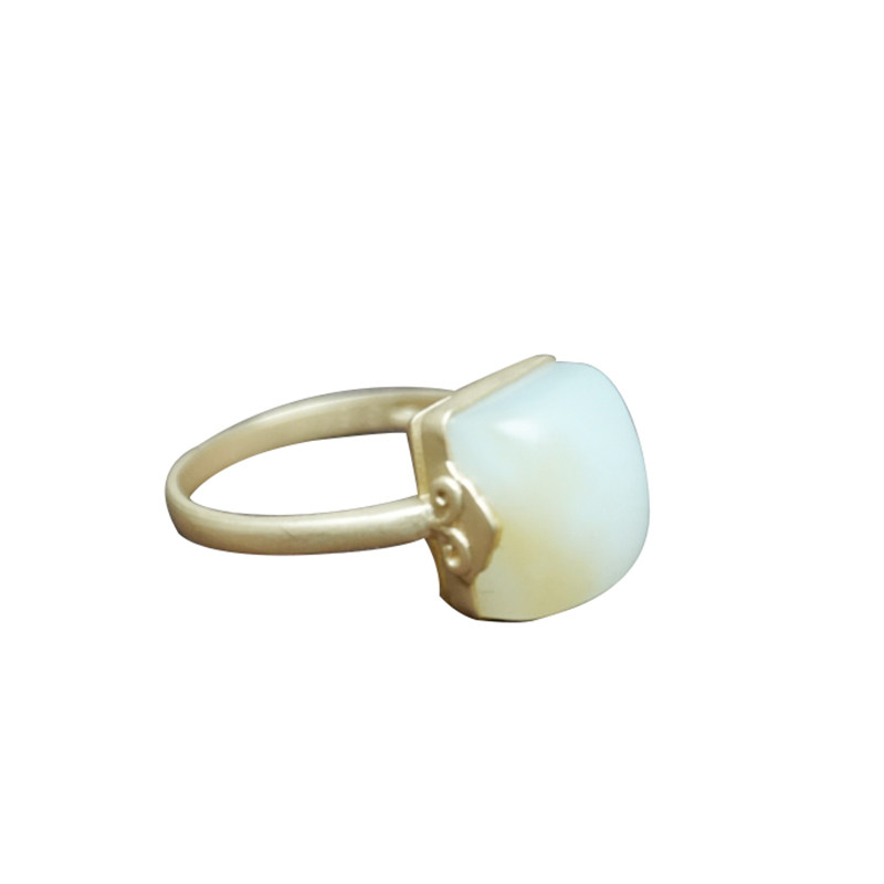 18K gold inlaid and field Bite jade apple cider green spinach green pendant ring