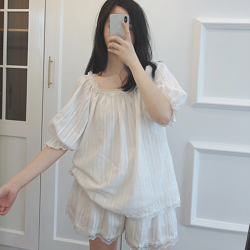 Japan Soft Honeys Pyjamas Woman Summer Short Sleeve Shorts Suit Princess Palace Wind Pure Cotton Home Clothes