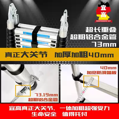 Multifunctional aluminum alloy herringbone ladder portable telescopic ladder home folding aluminum lift straight ladder thickening non-slip ladder