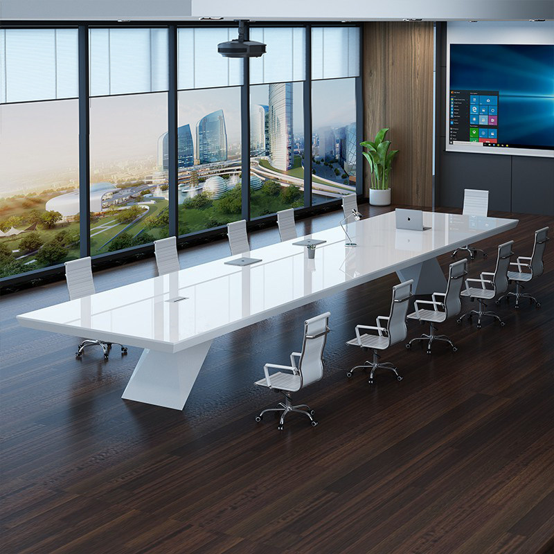 White paint conference table long table simple modern large and small rectangular negotiation table office table and chair combination