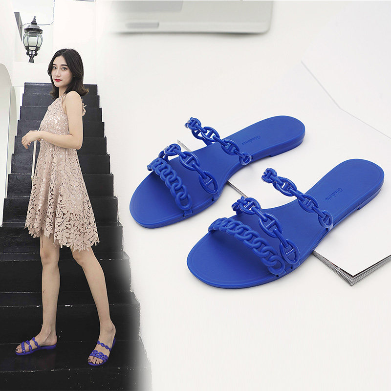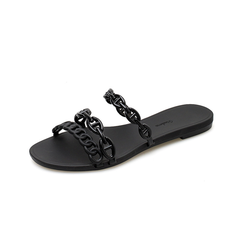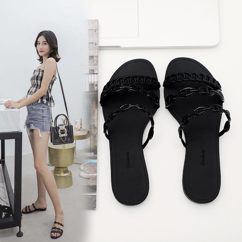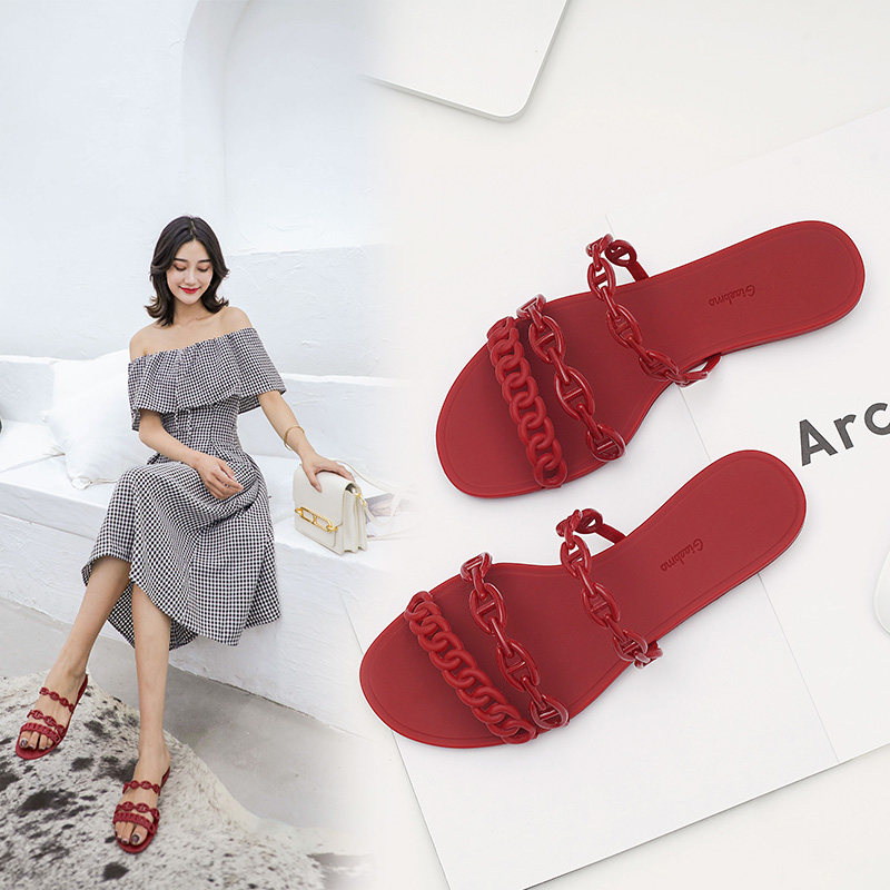Pig nose chain slippers female Xia Flat outside wearing red slippers anti-slippers travel vacation beach shoes