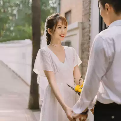 First see] Xia Xinchao fairy gentle first love embroidery dress tour vacation honeymoon license registration light wedding dress
