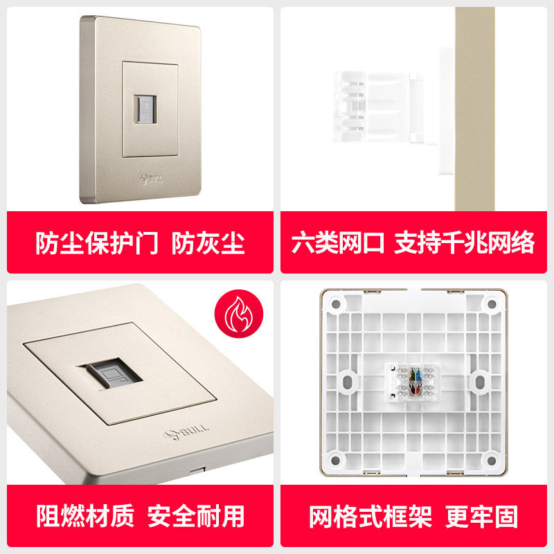 Bull Six Category Computer Network Cable Panel Gigabit Network 6 Single-Port Socket Network Port Hidden Box Docking Head Home