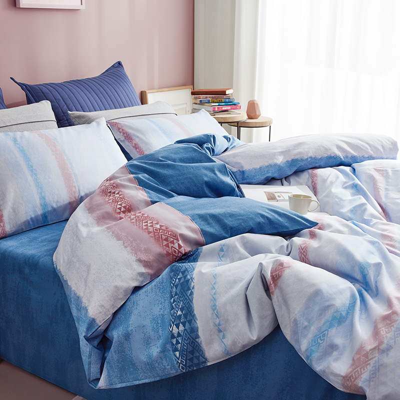Lechlea Home Textile LOVO Bed Bedding All-cotton Four Pieces Striped Collared Neutral Nordic Wind Pure Cotton Linen Quilt Cover
