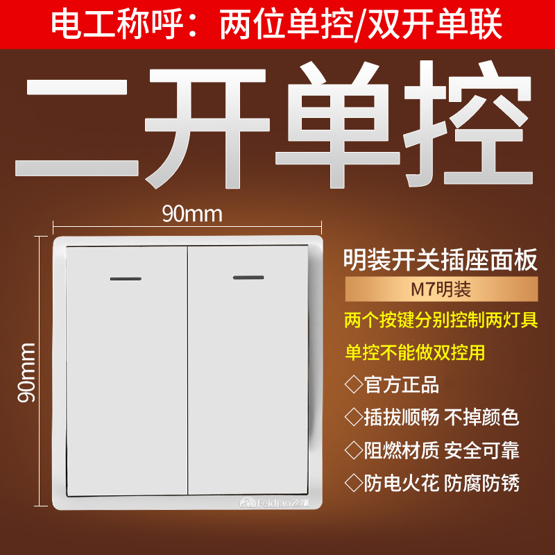 Flying Sculpture 86 Type of Ming fit M Two-opening single control switch Electric power supply panel Home 2-position Double switch Single-link white