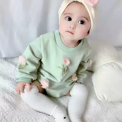 (A small amount of spot)Light green Korean version of nail flower long-sleeved triangle climb X5141 (A small amount of spot)Pink Korean version of nail flower long-sleeved triangle climb X5141
