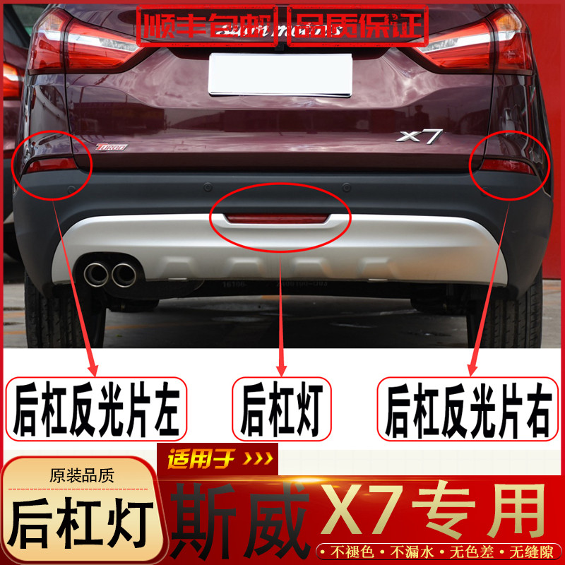 Middle of rear bumper, rear fog lamp, outer reflector of rear bumper, left (rear side of front driver) outer reflector of rear bumper, right (rear side of co-driver)