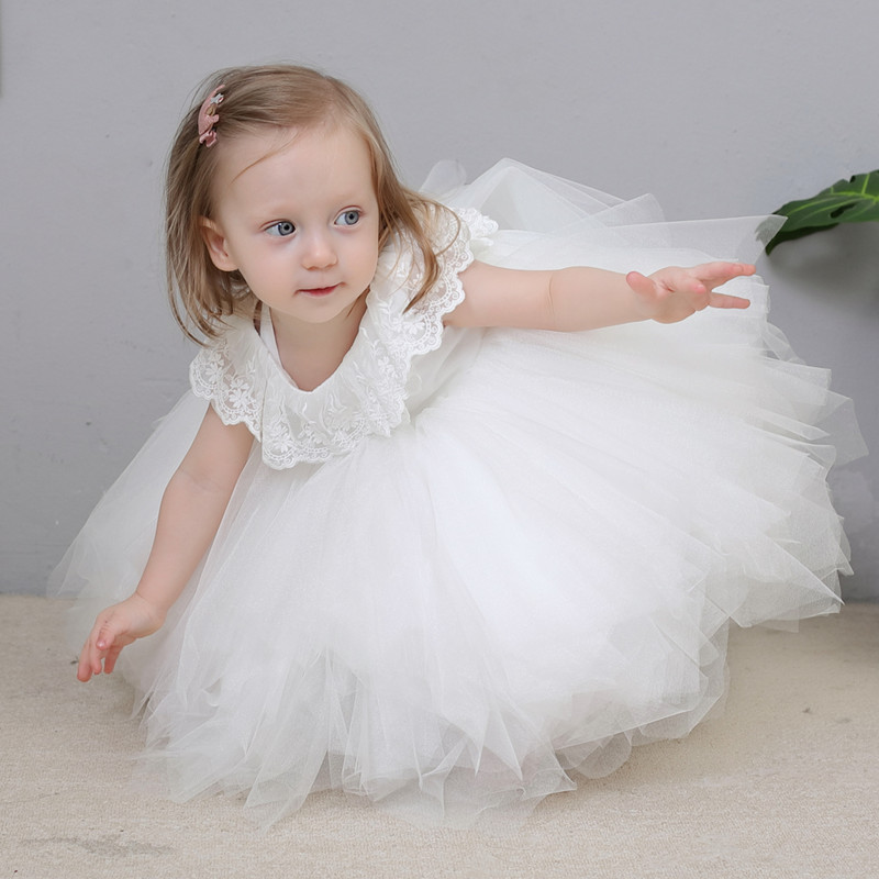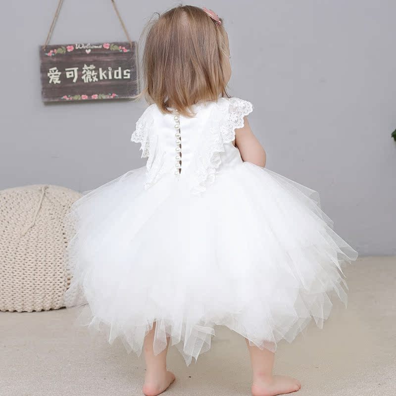 Customized baby one-year-old dress girl baby small wedding dress white tutu skirt 1-2-3 years old birthday dress flower girl dress