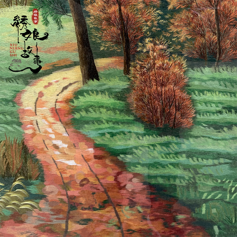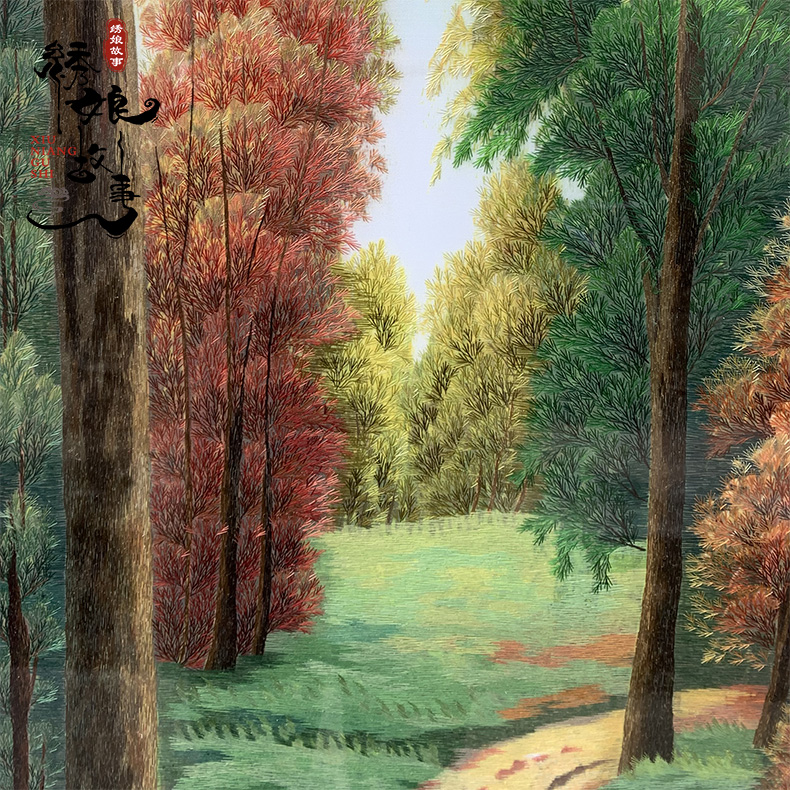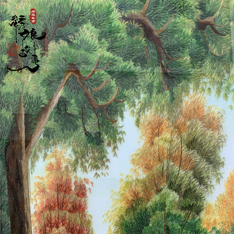 Embroidery story Su embroidery finished hanging painting European style Fenglin landscape painting Villa porch corridor vertical decorative painting