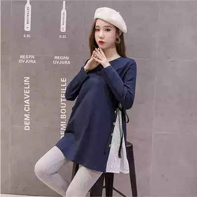 Pregnant women Spring Fashion long sleeve cotton stitching lace top 2020 Spring and Autumn loose pregnant women's dress two-piece