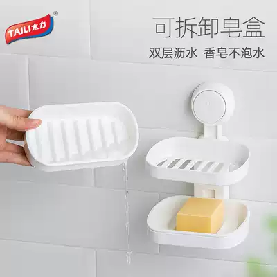 Tai Li soap box suction cup wall-mounted bathroom dressing room soap box double hole-free soap storage rack drain