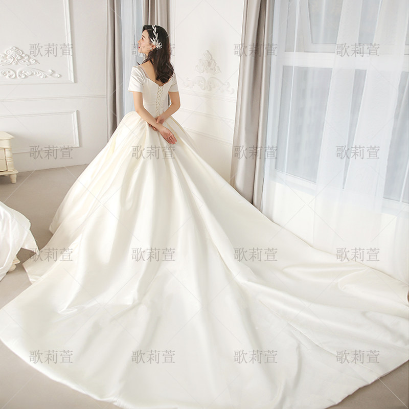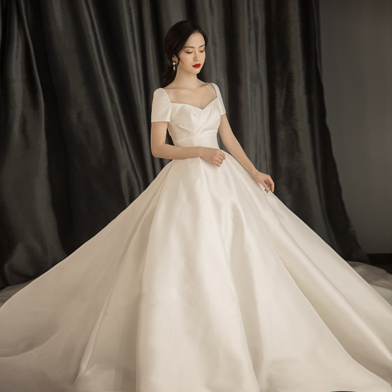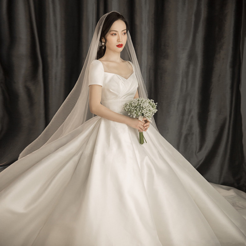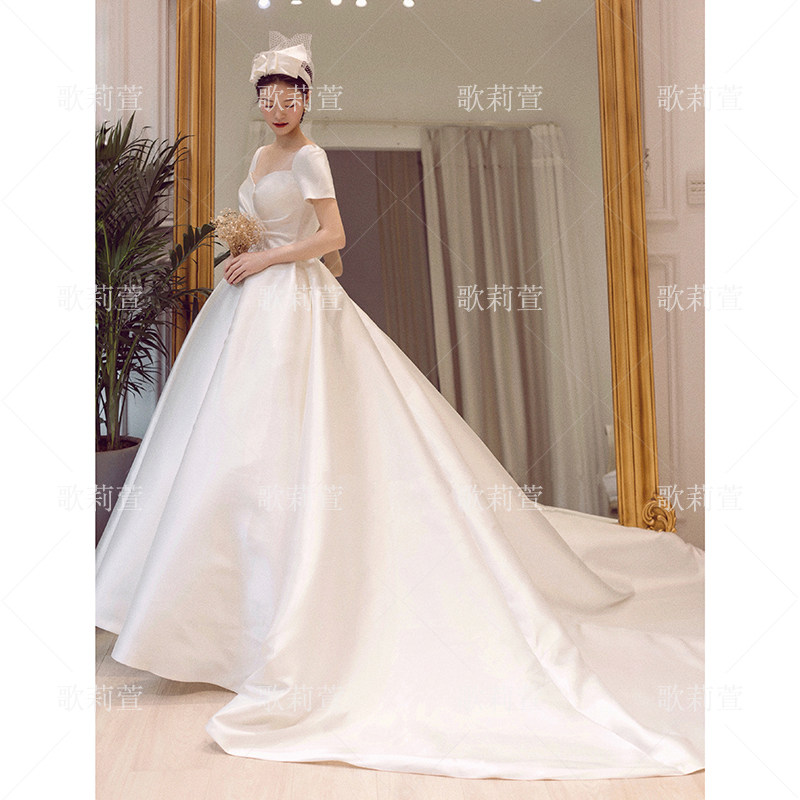 Satin wedding dresses 2022 new temperamental bridal style little sub minimis retro tug tail light and coarse arm