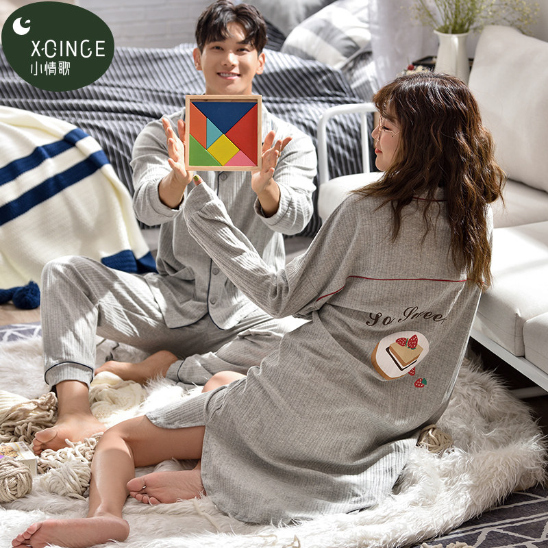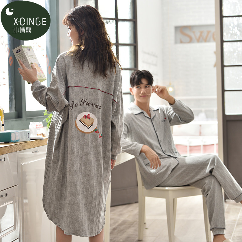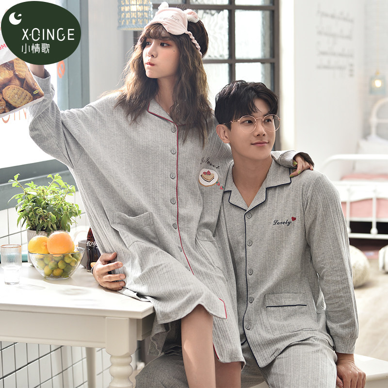 Couple pajamas spring and autumn models long-sleeved cotton men's cute net red pregnant women's nightdress women's autumn large size homewear suit