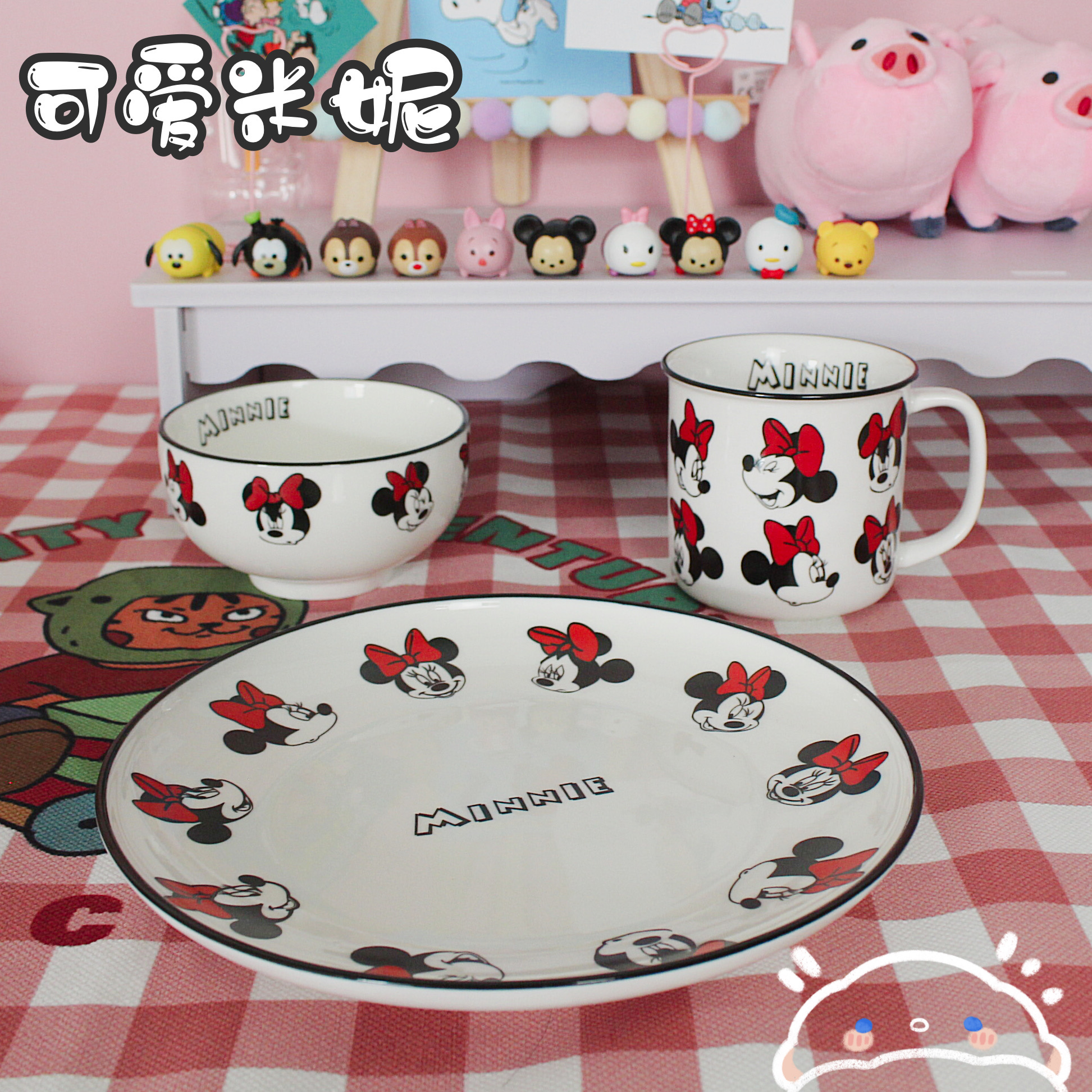 Mickey Minins Teenage Hearts Ceramic Dish Cute Creative Personality Trendy Cups Cutlery Bowls Family Suit