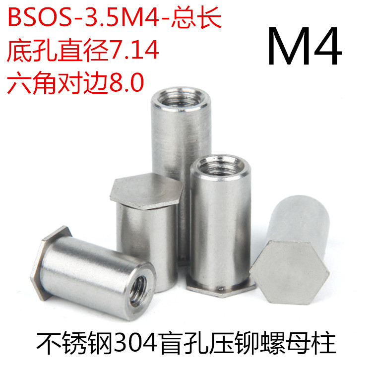 Stainless steel BSOS-3 5M4 blind hole riveting nut column 4-40 drilling 7 2 hexagonal sheet metal sheet riveting column