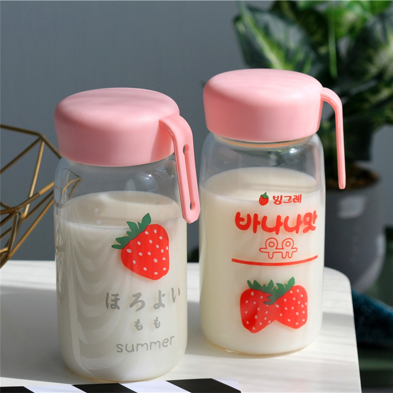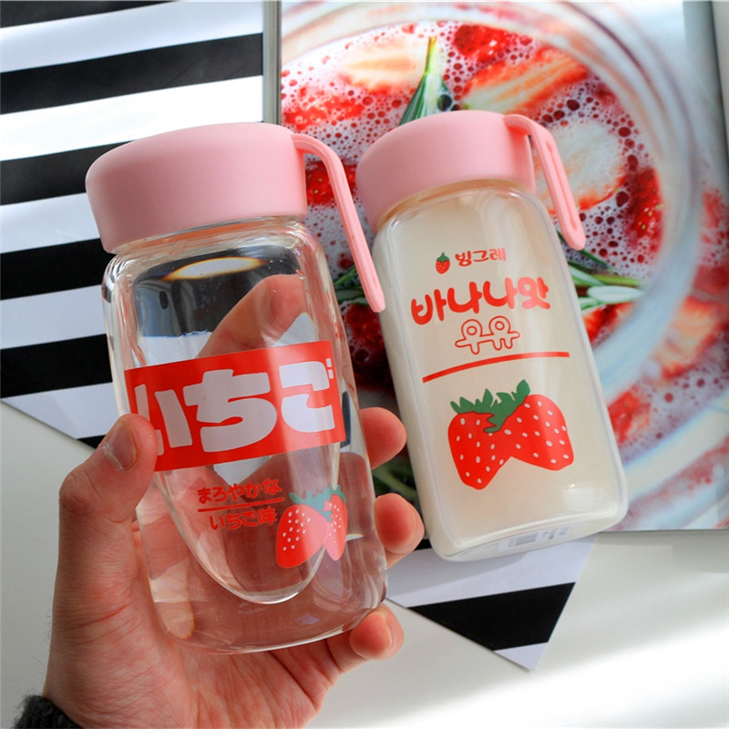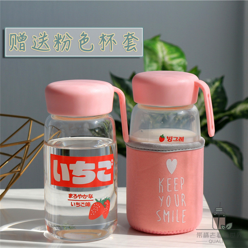 Day Department Strawberry Girl Glass Cup ins Wind minimalist about students' Cup Children's cute portable fresher teen Heart water cup